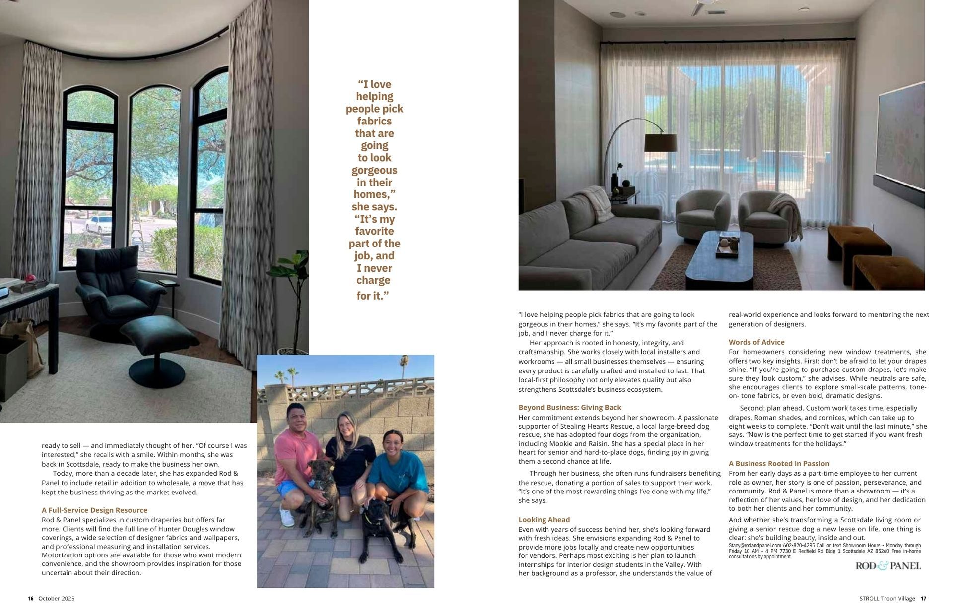 Rod & Panel is a designer fabric showroom located in the Scottsdale Airpark, offering thousands of fabrics and the expertise to turn them into something extraordinary for your home. Whether you're looking for floor-to-ceiling custom drapery, the perfect set of Hunter Douglas shades, or designer drapery hardware, we handle every detail — from the first consultation to professional installation.